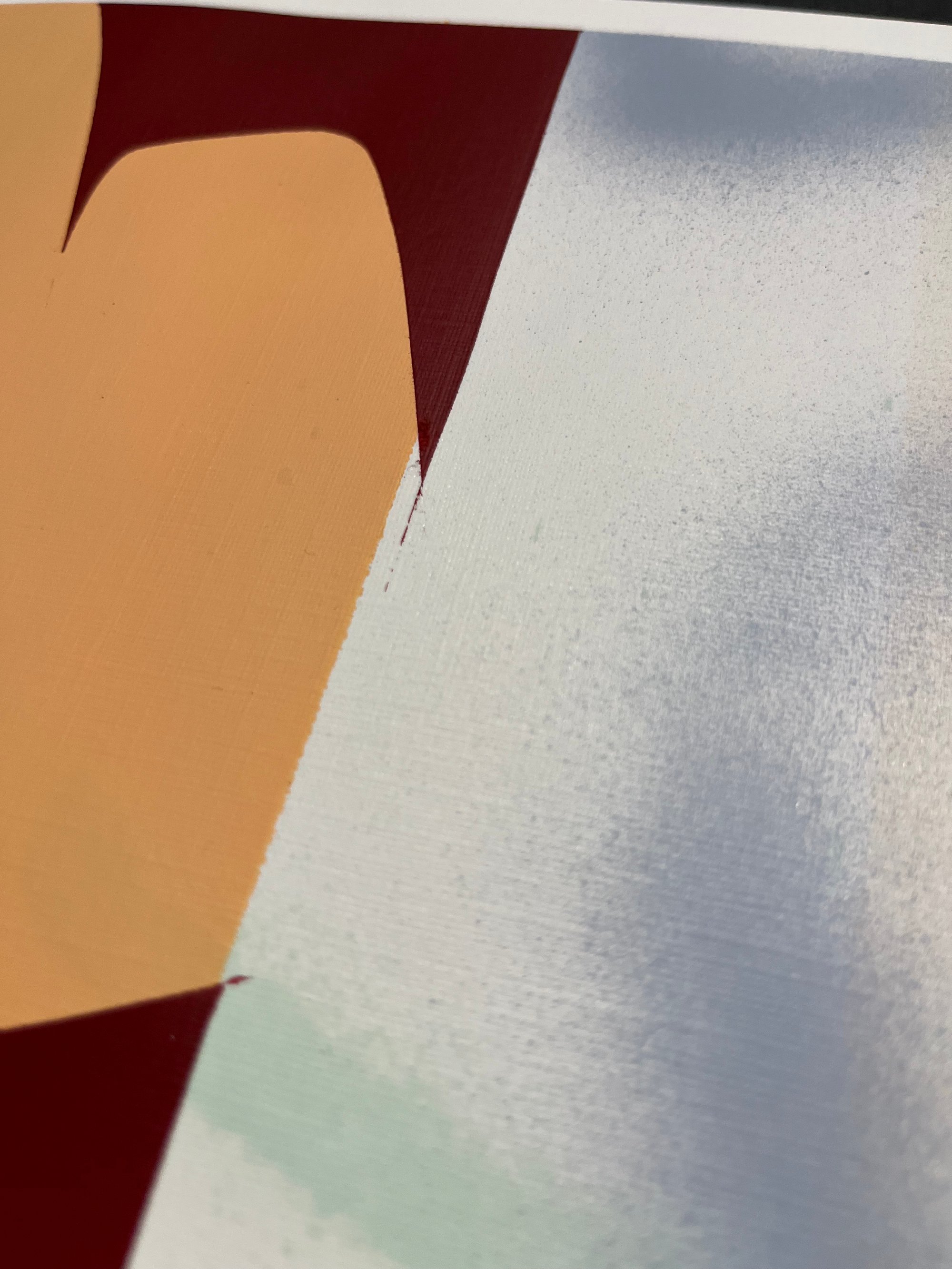 Spray paint and acrylic on 27.9 x 35.6cm Canvas textured 300gsm paper.