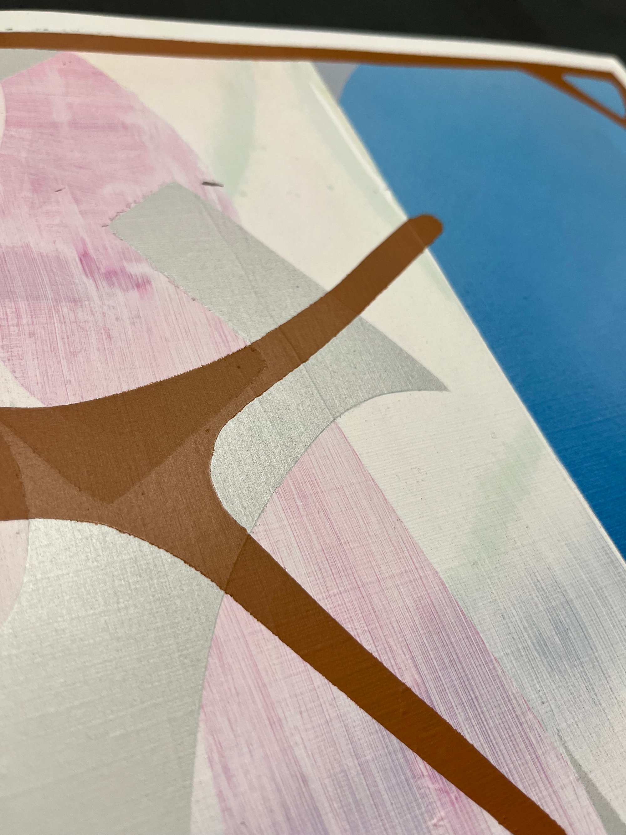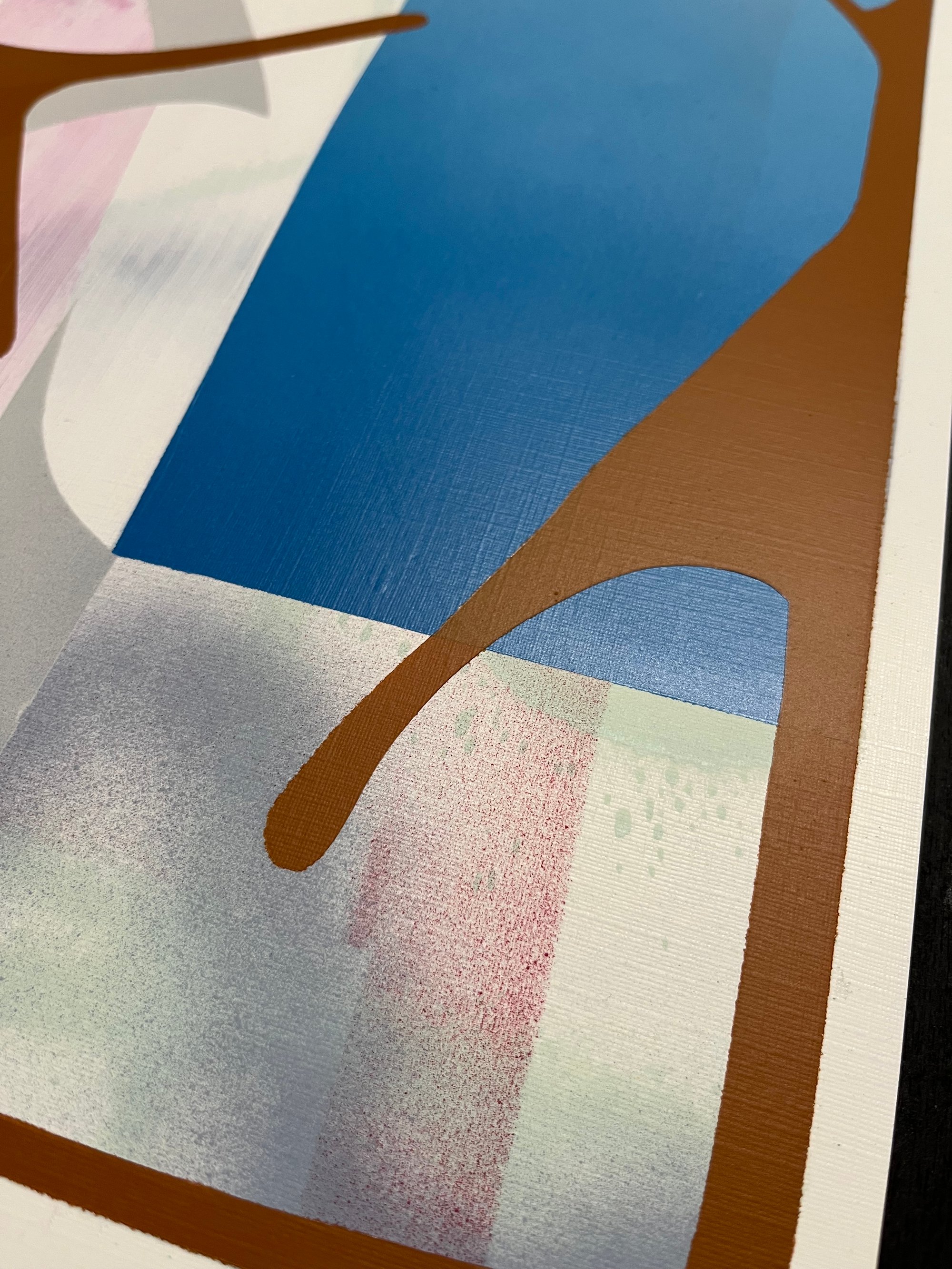 Spray paint and acrylic on 27.9 x 35.6cm Canvas textured 300gsm paper.